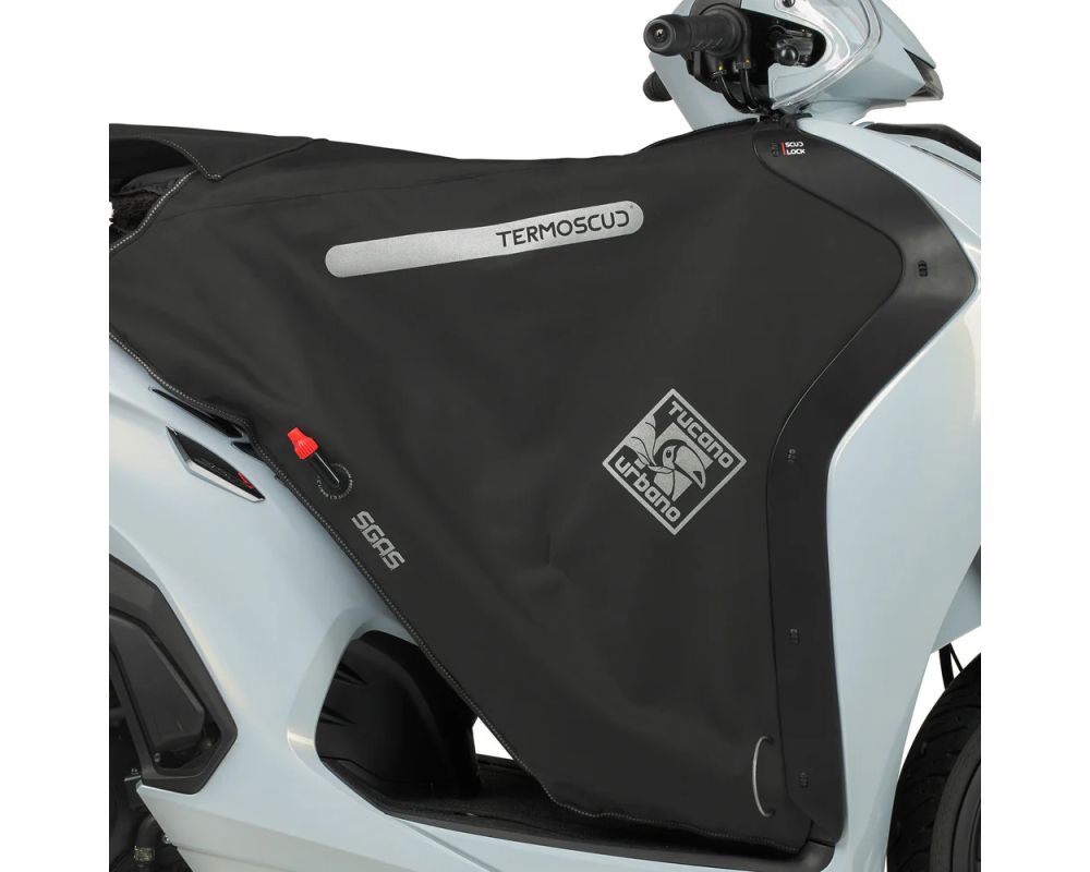Η TUCANO URBANO Termoscud® Scudlock αποτελεί την πιο σύγχρονη εξέλιξη της κλασικής κουβέρτας ποδιών Termoscud®. Εξοπλισμένη με το νέο σύστημα SCUDLOCK, προσφέρει ταχύτερη τοποθέτηση, σταθερή εφαρμογή και δυνατότητα χρήσης καθ’ όλη τη διάρκεια του έτους, χωρίς να αλλοιώνει την αισθητική του scooter.